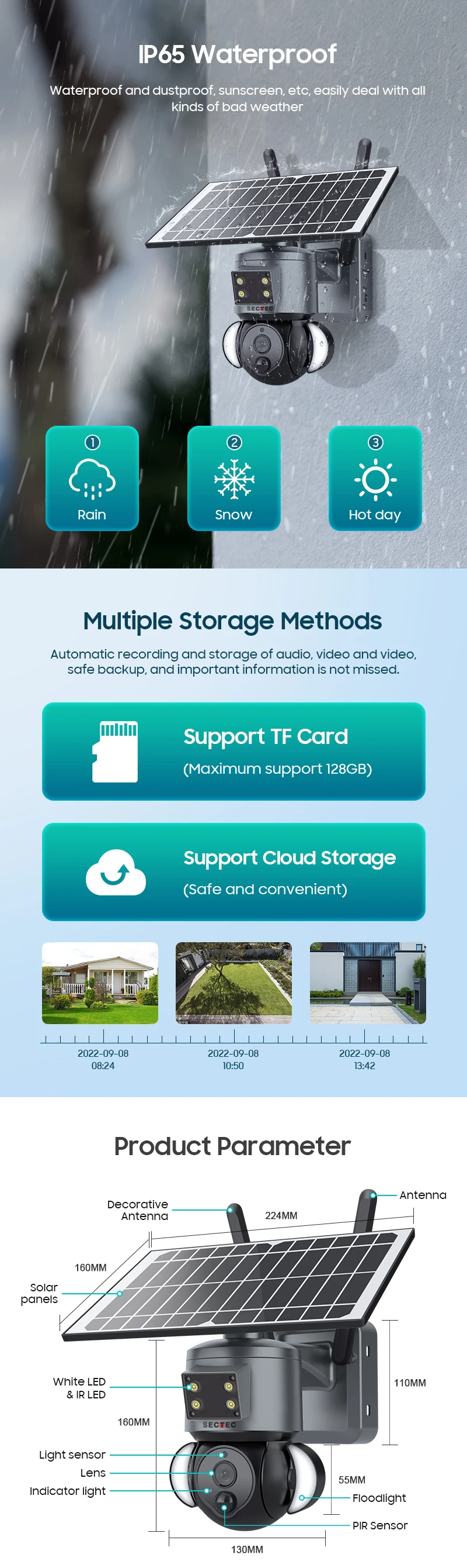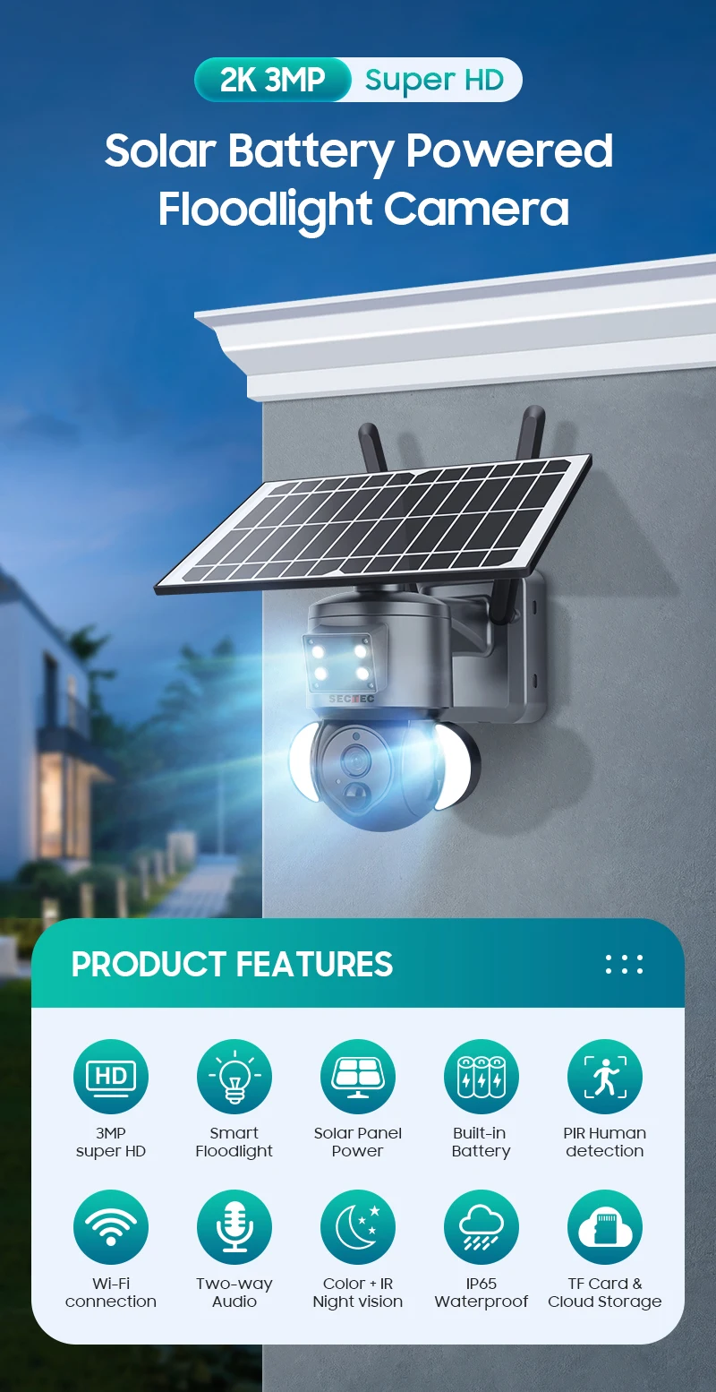 Trending Products Sectec HD 3MP CCTV Camera Security IP Wireless CCTV System Surveillance Products Wifi Solar Camera