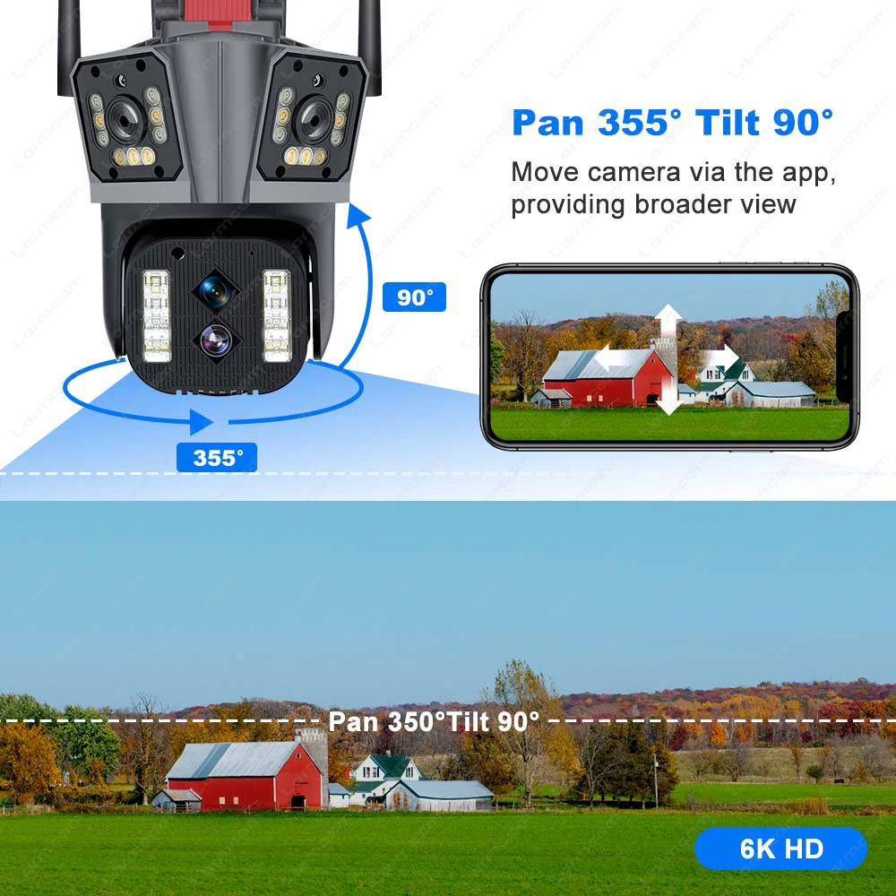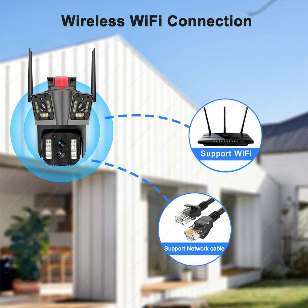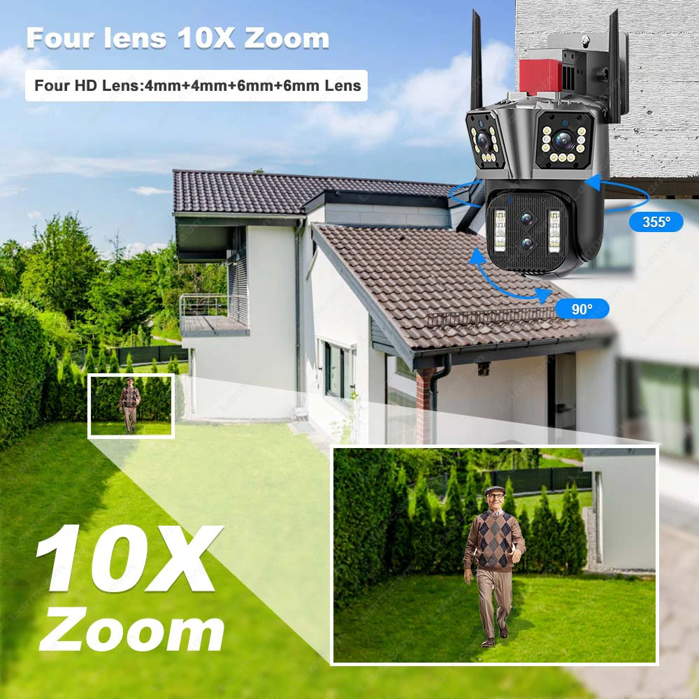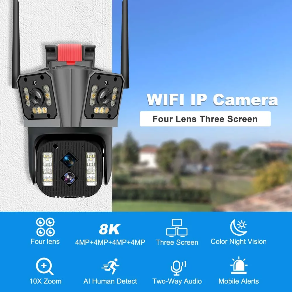 16MP 8K Security Camera Outdoor Wireless WiFi Camera 10X Hybrid Zoom Four Lens Three Screen PTZ IP Camera surveillance systems