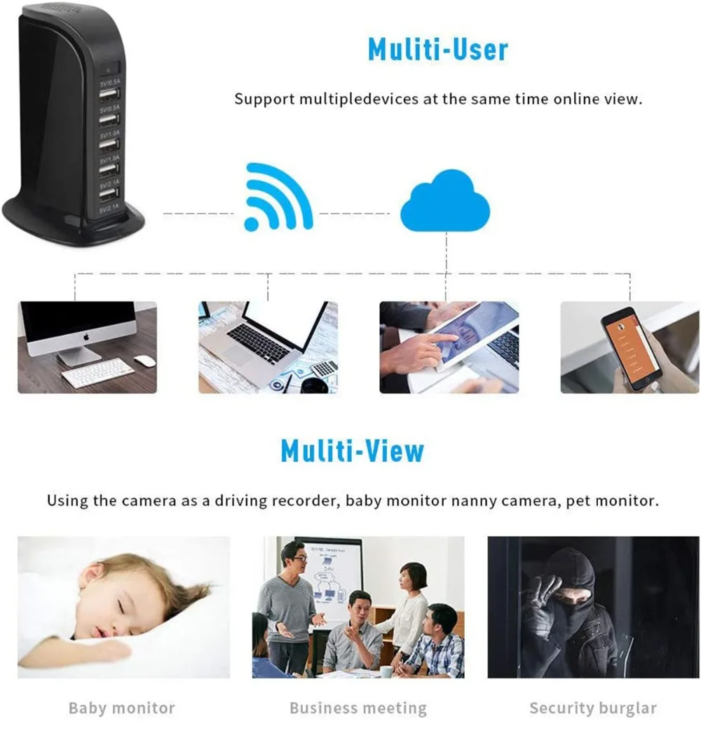 5 Port USB camera charger Wireless Full HD 4K Wifi Charger Camera Real time Surveillance Motion Detection Camera