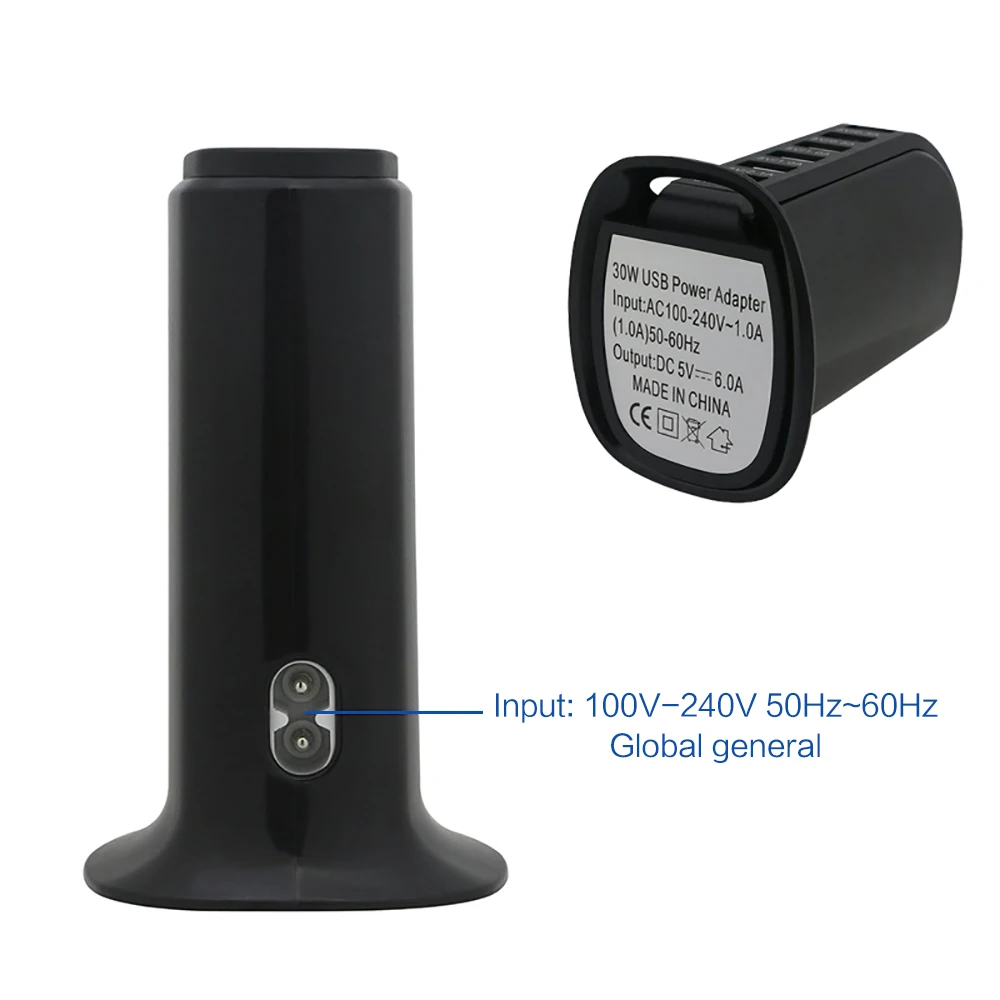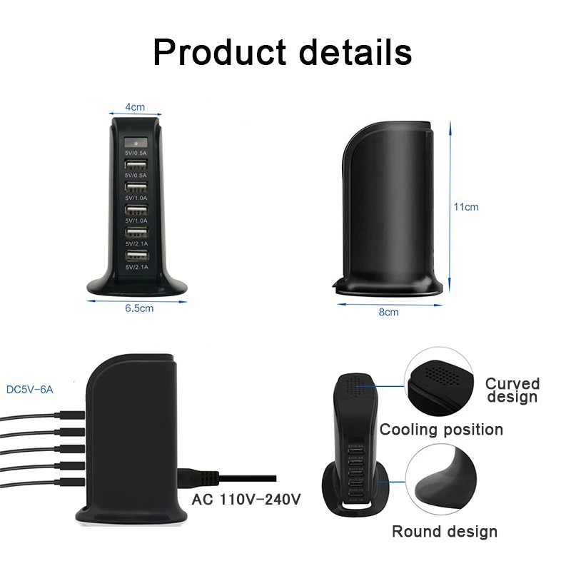 This product is a high-definition WIFI charger with external SD/TF card memory. As a multi-functional the camera, it integrates a camera with video recording, motion detection, storage, and 5 USB slot plug, they powered by AC100-240V.