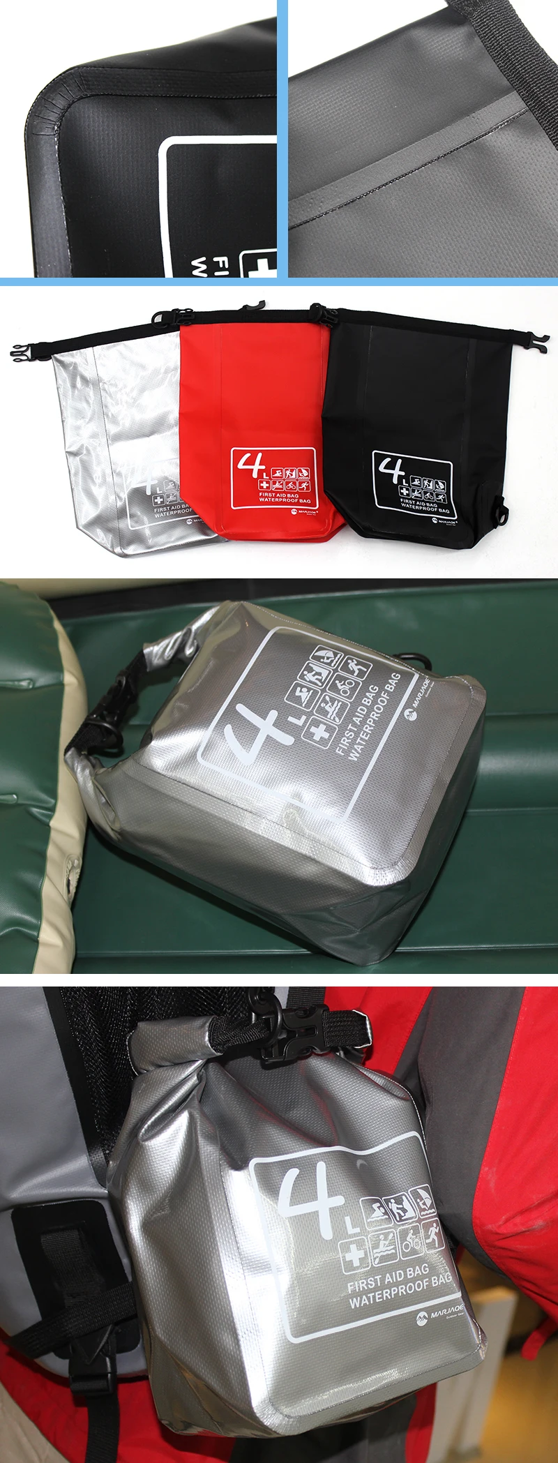 Hot Sale Easy To Carry 500D PVC Tarpaulin Material Waterproof Emergency Bag First Aid Dry Bag For Outdoor Sports