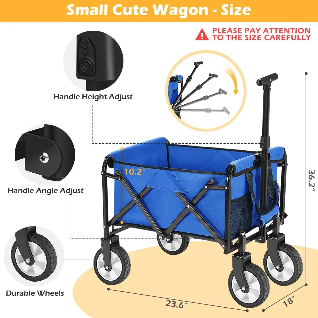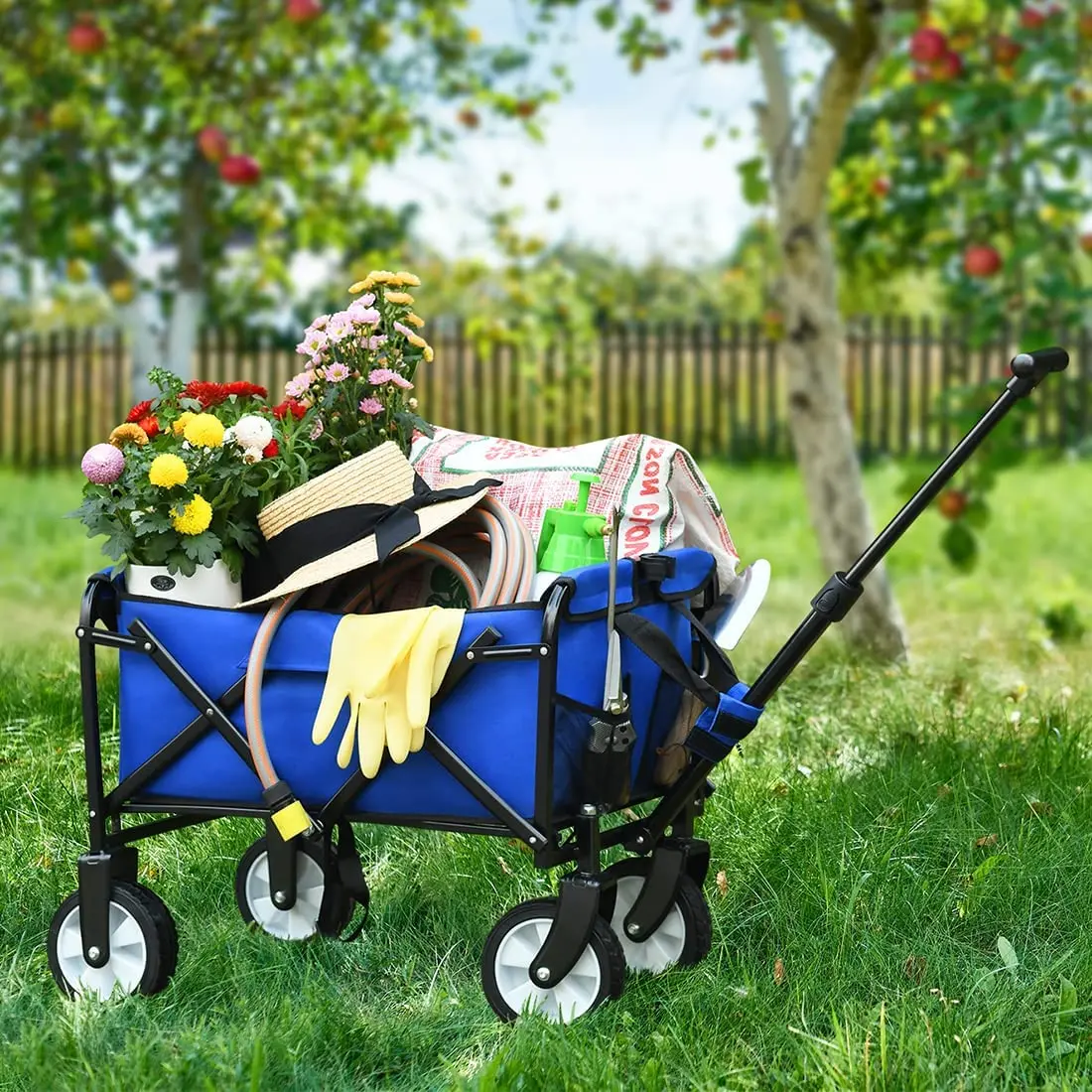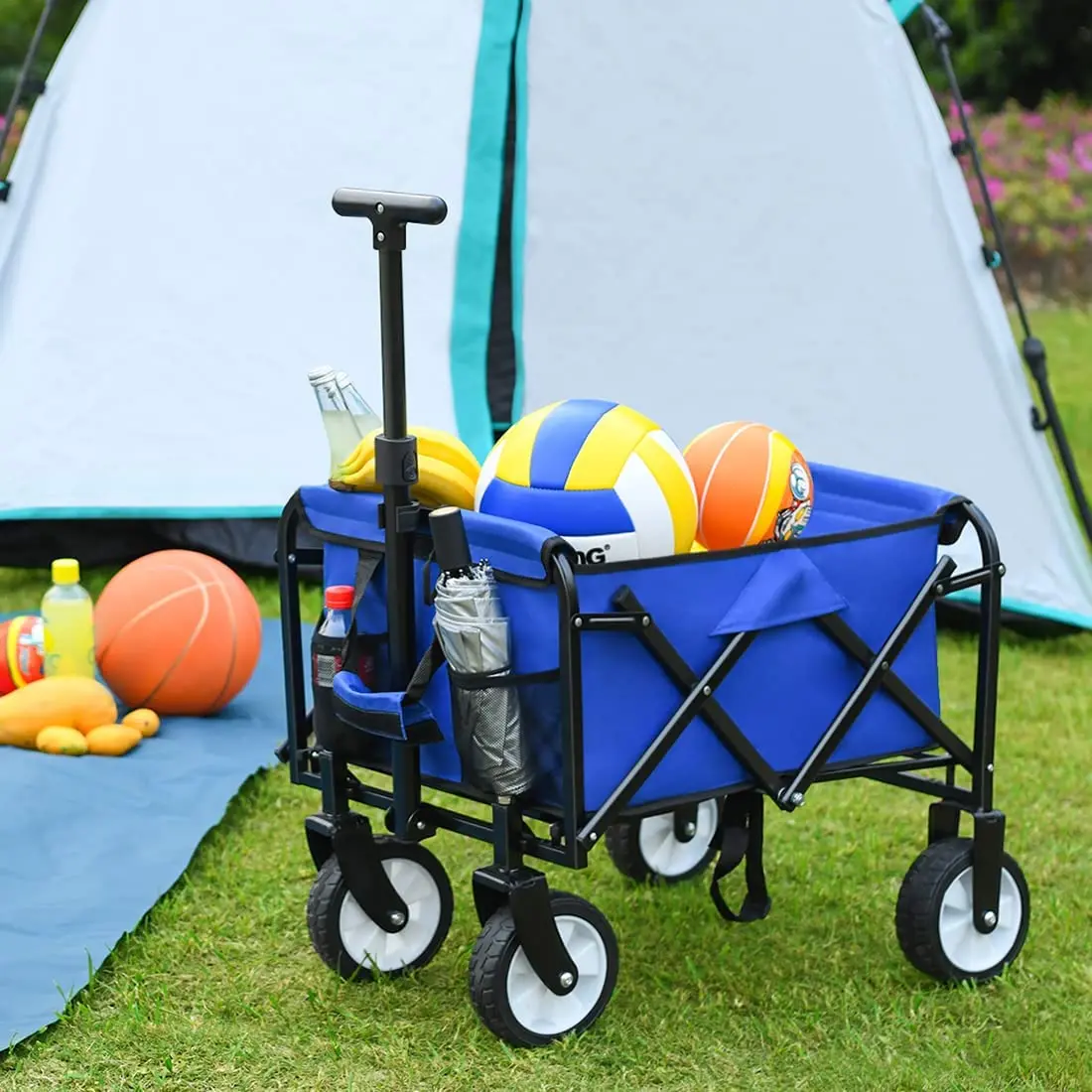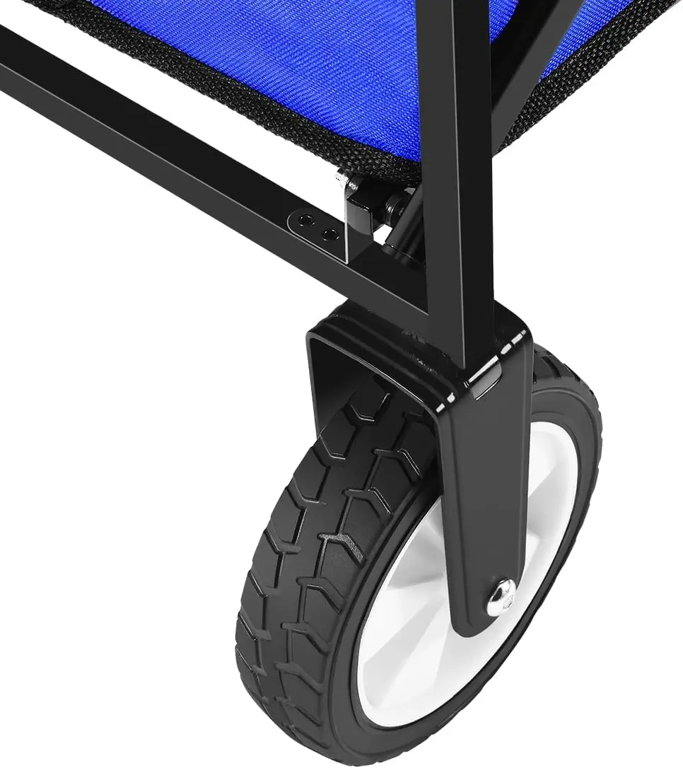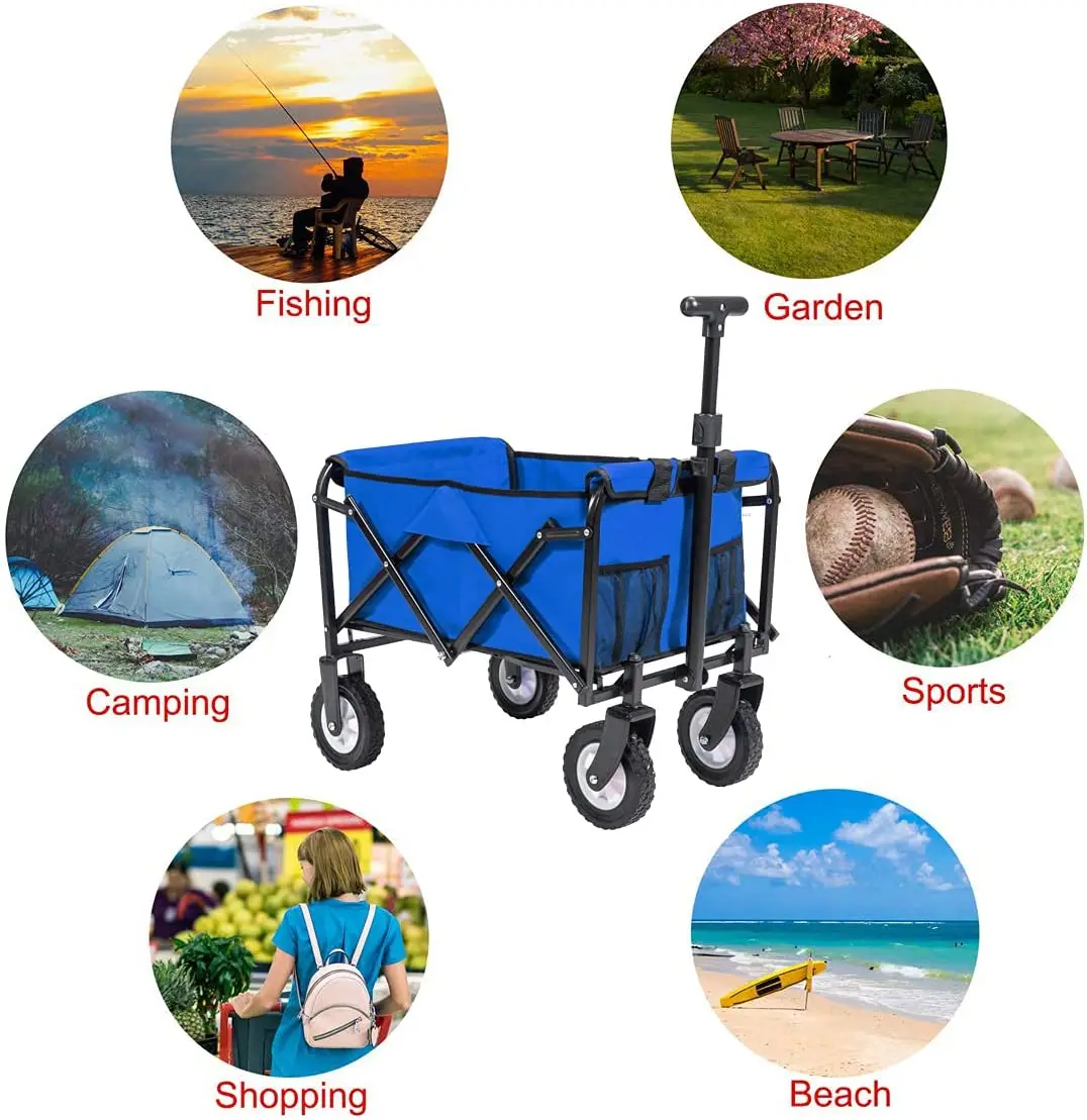 Collapsible Folding Wagon Utility Foldable Pull Cart Small Grocery Garden Cart Camping Beach Outdoor Sports Cart Blue