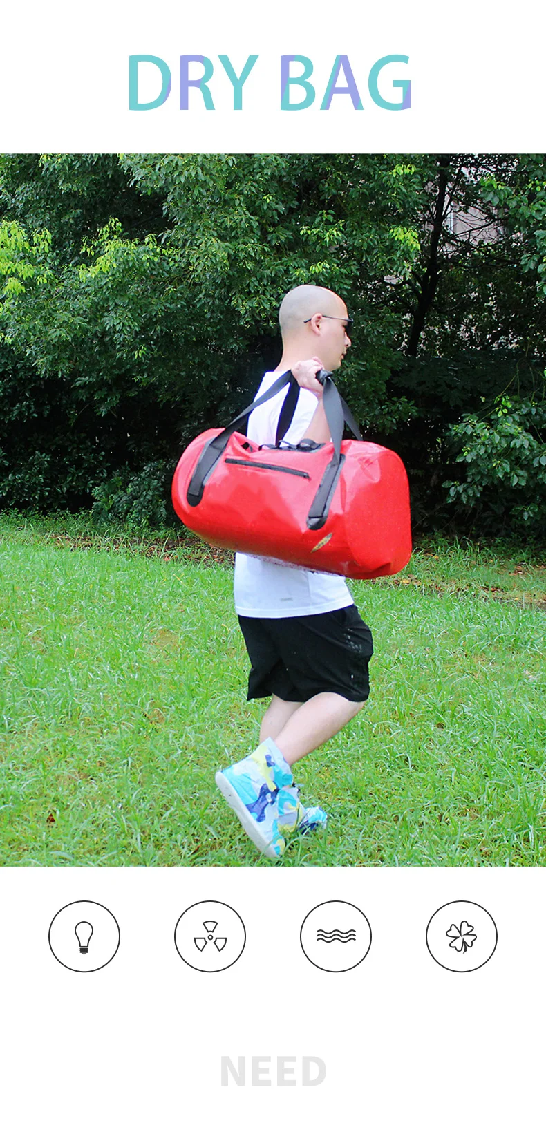 dry bag has good waterproof, dustproof and scratch-proof performing. We meticulously use the translucent frosted material, with its transparency you can easily find what's inside without messing up the dry bag. Also it makes your dry sack more textured, and stands out from ordinary dry bags. So just equip your gear, roll it down, and continue your adventure with drybag dry bag!